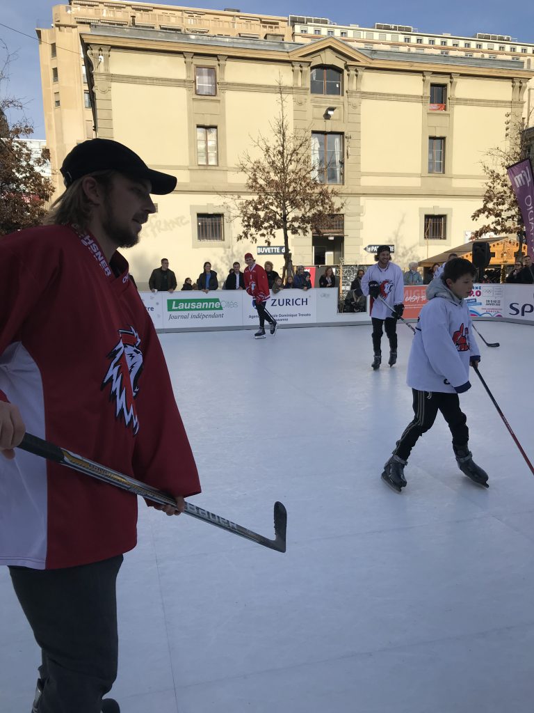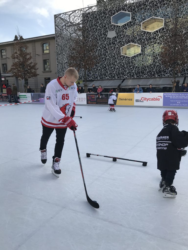 Ensuite, de 14h45 à 15h15, un entraînement de l’Ecole de Hockey du Lausanne Hockey Club et des trois joueurs a eu lieu sur la glace du Flon. Enfin, dès 15h30, les joueurs ont signé des autographes.