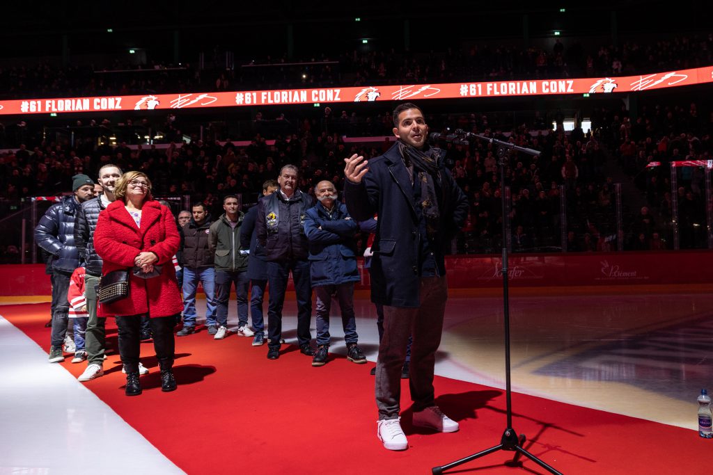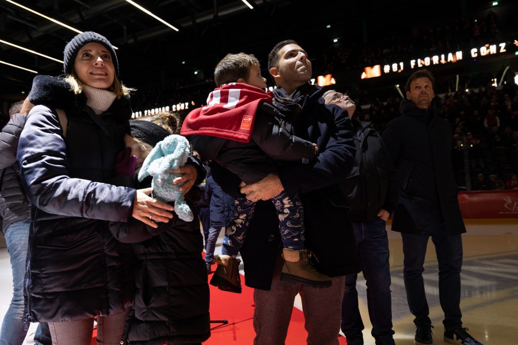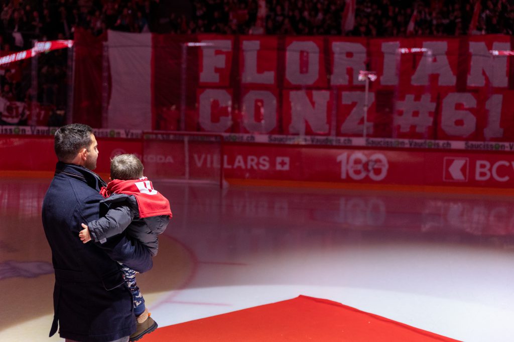 Mardi 30 novembre, le Lausanne Hockey Club a retiré le maillot de son numéro 61 Florian Conz, à l’occasion d’une cérémonie en avant-match. Un moment magique pour notre ancien capitaine, accompagné de sa famille, de ses amis et d’anciens coéquipiers !